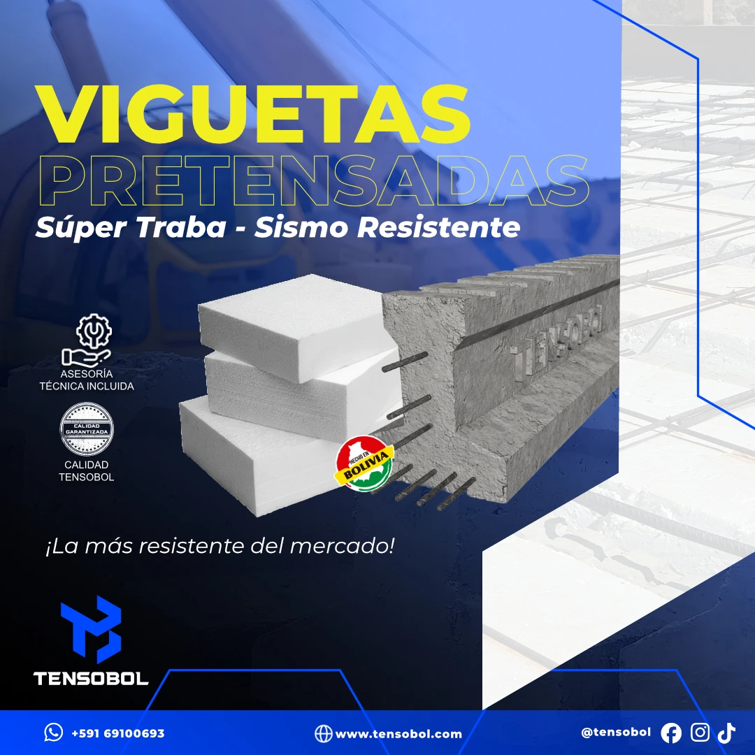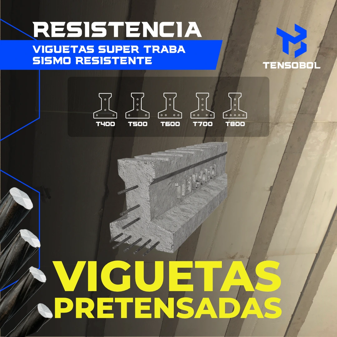 Las viguetas pretensadas TENSOBOL son elementos prefabricados de hormigón de alta resistencia, diseñados para ofrecer un desempeño superior en sistemas de losa alivianada. Se producen bajo un estricto control de calidad, garantizando uniformidad, estabilidad y un acabado óptimo para su integración en proyectos residenciales, comerciales e industriales.